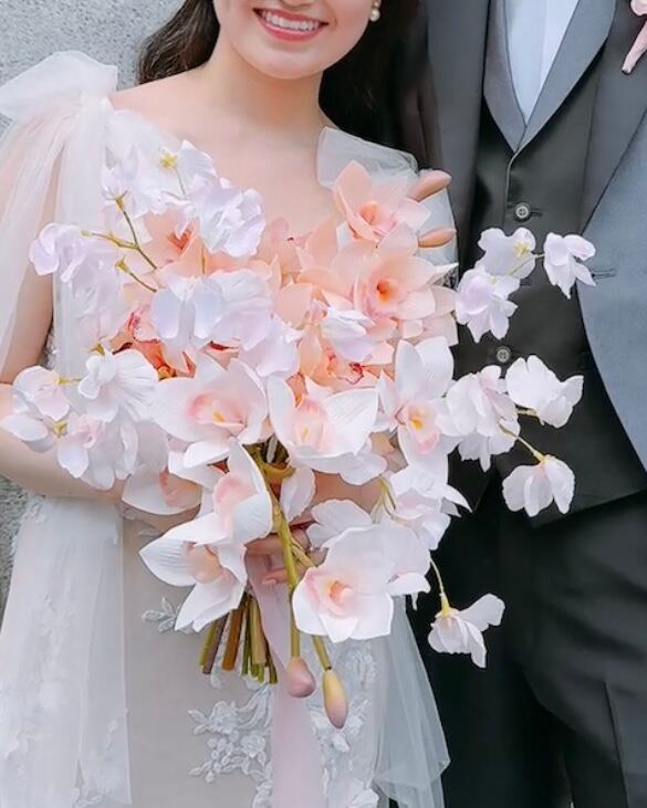 シンビジュームとスイートピーを使用した韓国ブーケ。