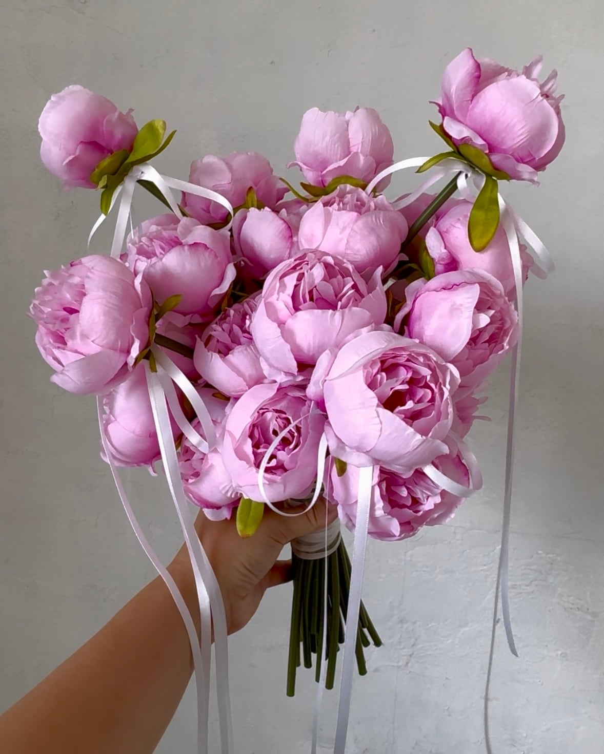 細いバレリーナリボンをあしらい、ロマンティックなイメージに仕上げたトレンドデザインブーケ。